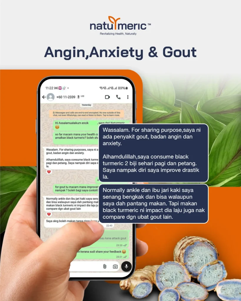 📊 Lebih 90% pengguna alami perubahan positif – sakit sendi berkurang, tidur lebih lena, tenaga meningkat & paras asid urik terkawal selepas konsisten amalkan Naturmeric Black Turmeric Gold.