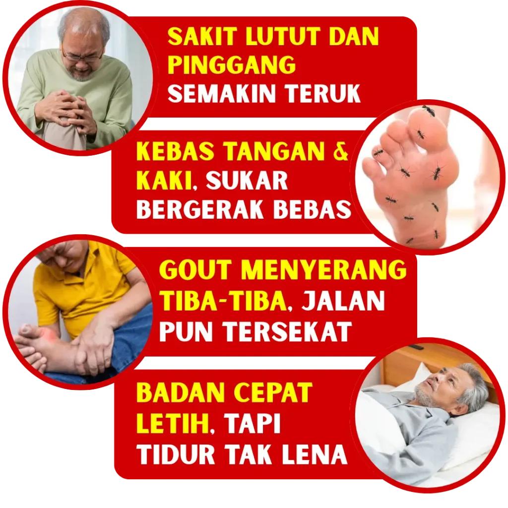 Akibatnya, kita mudah diserang sakit lutut, badan terasa lenguh dan sendi makin lemah dari hari ke hari.
